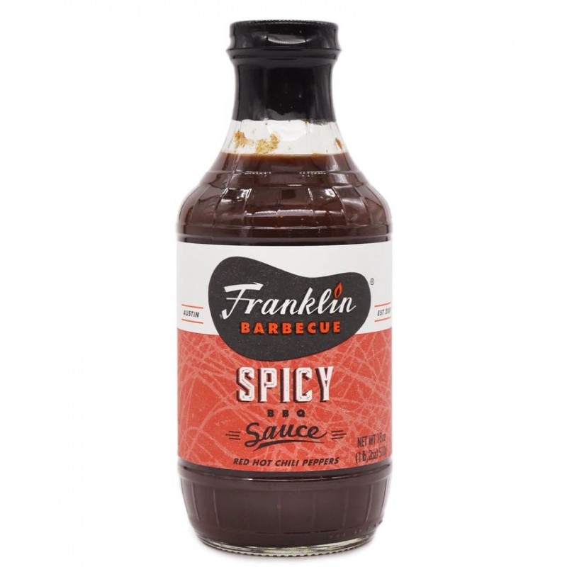 Franklin BBQ grilovací omáčka Spicy je pikantní omáčka na grilování a barbecue, kterou vyvinul osobně Aaron Franklin podle myšlenky, jak by omáčka ve stylu Texasu měla chutnat. Omáčka je vyráběna z kvalitních surovin a vyznačuje se bohatou kořeněnou chutí. Tato sladko kyselá omáčka je ideální k použití na všechny druhy masa a dodá vašim jídlům nezaměnitelnou chuť.Složení:rajčatové pyré (filtrovaná voda, rajčatový protlak), jablečný ocet, cukr, světle hnědý cukr, červené paprič