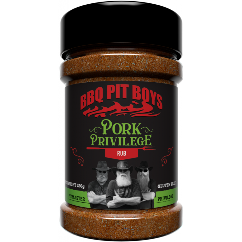 BBQ Pit Boys Pork Privilege je kořenící směs, která byla speciálně vytvořena pro použití při grilování nebo při přípravě jiných jídel na grilu. Obsahuje kombinaci různých koření a bylinek, včetně papriky, česneku, cibule, oregana, černého pepře a dalších.Tato směs má silnou chuť a aroma a dodává pokrmům unikátní vůni a chuť. Je ideální pro použití na vepřovém mase. BBQ Pit Boys Pork Privilege lze použít také jako marinádu nebo jako koření pro přílohy, jako jsou brambory nebo zelenina. Tato koře