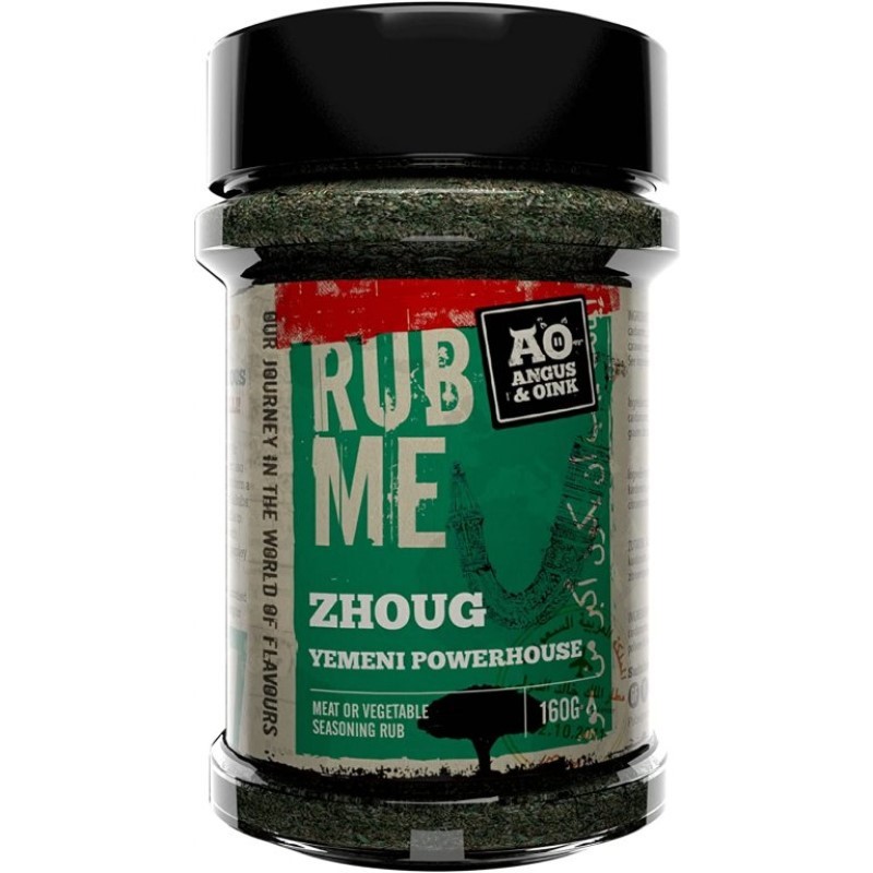 Angus&Oink Zhoug je jedinečná směs koření inspirovaná Středním východem určená pro přípravu BBQ jídel zejména kuřete, mořských plodů, chleba nebo k výrobě pikantního dresinku na salát. Jedná se o směs vybraných bylin a koření, které dodají vašim jídlům jedinečnou chuť a aroma. Toto koření je vyráběno společností Angus&Oink, která je známá svými kvalitními BBQ produkty.Koření Zhoug obsahuje přísady jako je koriandr, jalapeňo, kardamom, hřebíček a další
