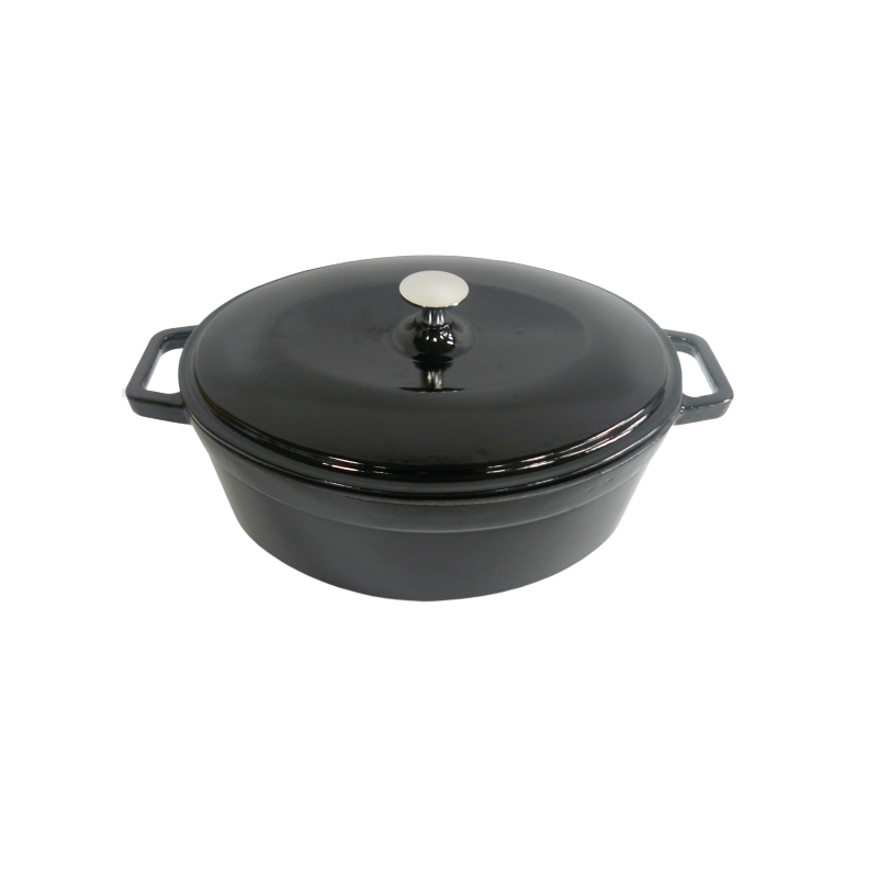 Černý litinový hrnec s poklicí o velikosti 30 x 23 centimetrůHrnec má na povrchu ochrannou vrstvu, díky které je povrch dokonale nepřilnavý a ani kovové grilovací nářadí jej nepoškrábeVelmi robustní provedení – hrnec váží 5 kilogramů, díky čemuž výborně drží teplo a umožňuje pomalé pečení/dušení masaLitinový hrnec nabízí všestranné využití – můžete v něm vařit, dusit, smažit, péct…zkrátka na co máte zrovna chuťVelkou výhodou je skvělá žáruvzdornost – litinov