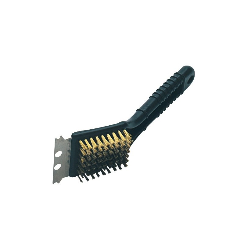Chcete se po grilování rychle a s co nejmenší námahou zbavit připečené mastnoty a dalších nečistot? Není nic snazšího než k odstranění špíny z grilovacího roštu použít speciální čisticí kartáč 2 v 1 od Campingaz. Kartáč má ergonomickou rukojeť, mosazné štětiny a je zakončen kovovou škrabkou. Kartáč se používá primárně na čištění ocelových nebo litinových roštů u všech typů plynových i kotlových grilů Campingaz.