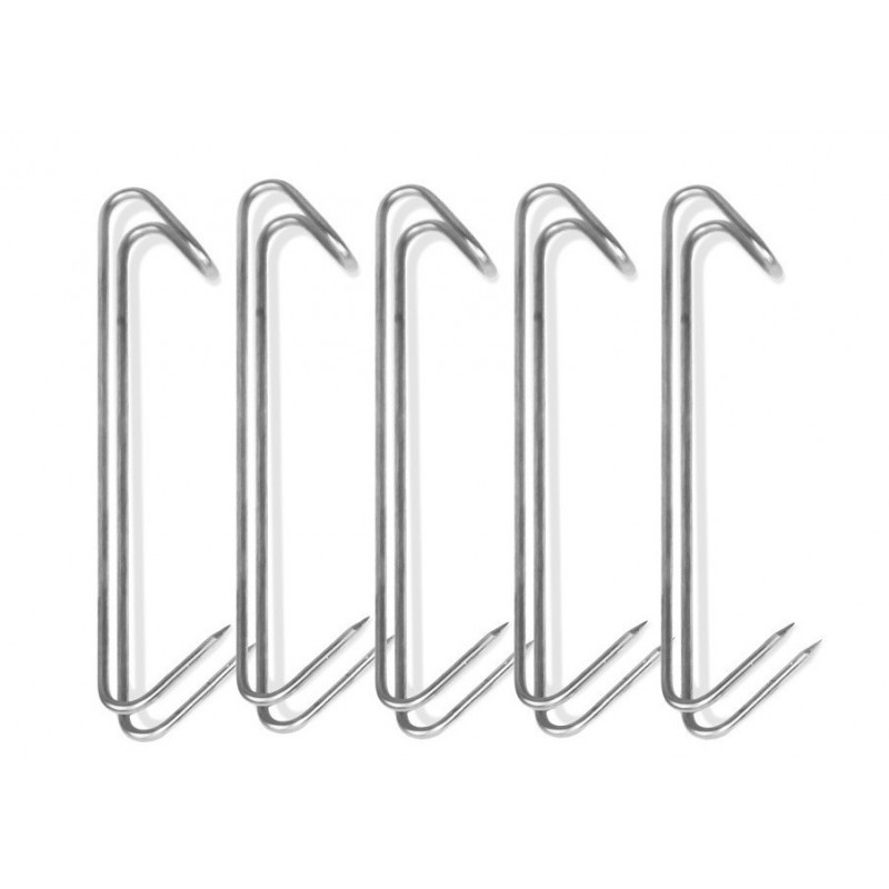 5 ks nerezových háčků uzení pro elektrické udírny BorniakDvojité háčky jsou zvlášť vhodné na zavěšení šunky, pečeně a jiných velkých kusů masaDvojitý háček je zárukou, že se uzené maso nebude protáčetDvojité háčky na uzení jsou vyrobeny z nerezové oceli a jsou odolné proti kyselinám