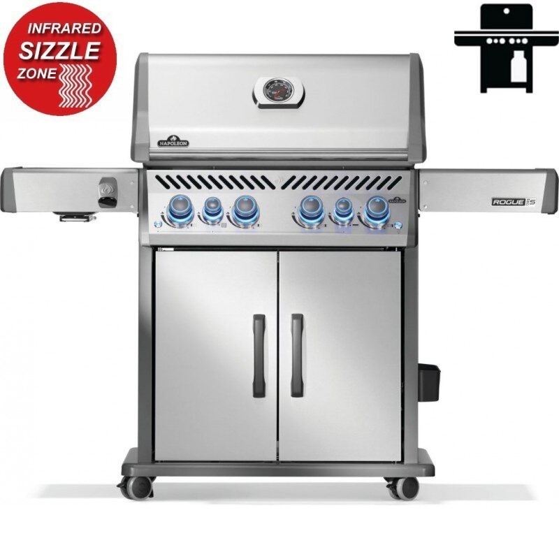 Větší plynový gril Napoleon Rogue 525 PRO-S se čtyřmi trubkovými hořáky z nerezové oceli, jedním hořákem umístěným v levém bočním pultíku a zadním infrahořákem, který je perfektní hlavně pro použití grilu s otočným rožněm Boční infračervený hořák SIZZLE ZONE s teplotou až 800 °C je určený pro rychlé zatažení steaků před samotným grilováním, ale zároveň poslouží i jako postranní vařič k přípravě příloh či omáček