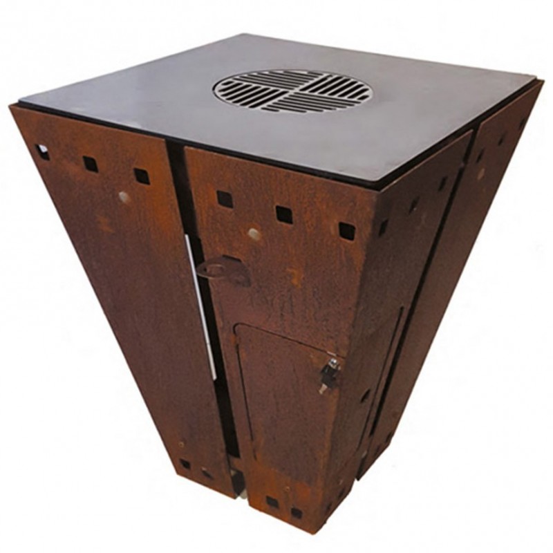 Robustní venkovní ohniště Remundi s čtvercovou grilovací plotnou pro celoroční grilování nebo jen příjemné posezení u plápolajícího ohněRustikální design zrezlého kovu dokonale zapadne do Vaší zahradyVysoká hmotnost (91 kg) zajišťuje výbornou stabilitu a tepelnou akumulaciJako palivo se používá kusové dřevo nebo dřevěné uhlíKe grilování slouží ocelová grilovací plotna vyrobená z 8 mm silné oceli o rozměrech 72 x 72 cm, kterou snadno rozpálíte až na 300 °C