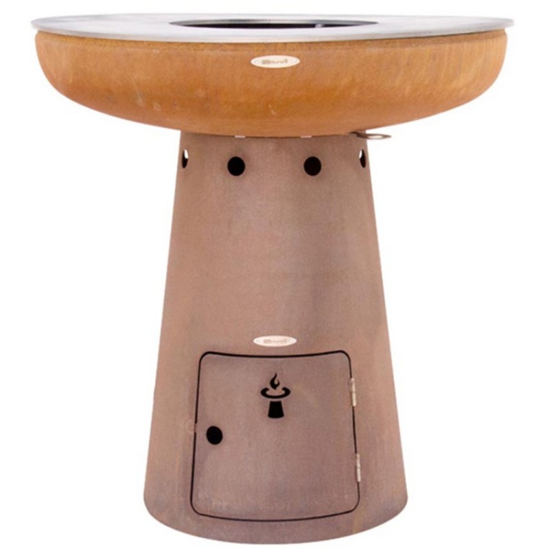 Robustní venkovní ohniště Remundi s kulatou grilovací plotnou pro celoroční grilování nebo jen příjemné posezení u plápolajícího ohněRustikální design zrezlého kovu dokonale zapadne do Vaší zahradyVysoká hmotnost (97 kg) zajišťuje výbornou stabilitu a tepelnou akumulaciJako palivo se používá kusové dřevo nebo dřevěné uhlíKe grilování slouží ocelová grilovací plotna vyrobená z 8 mm silné oceli o průměru 102 cm, kterou snadno rozpálíte až na 300 °CKo