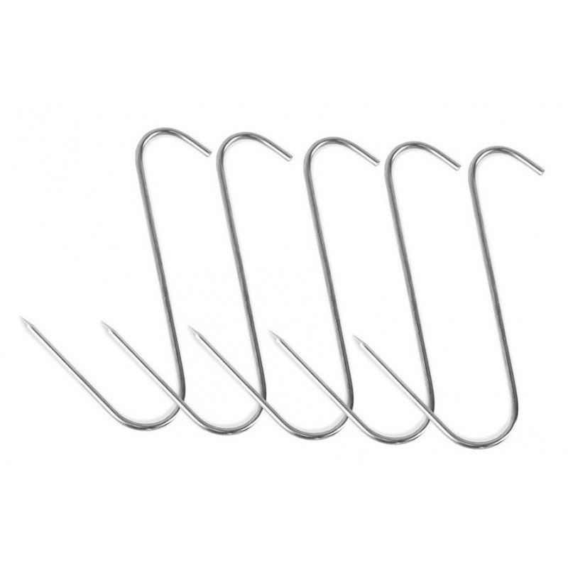 5 ks nerezových háčků na uzení pro domácí elektrické udírny BorniakHáčky jsou vhodné pro uzení klobás, salámů, šunek a velkých kusů masaHáčky jsou vyrobené z nerezové oceli a jsou odolné proti kyselinám