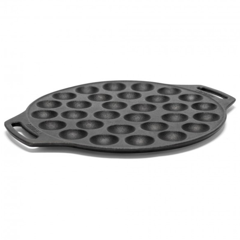 Masivní litinová pánev na výrobu holandských mini palačinekNa pánvi lze v jeden okamžik připravovat až 30 mini palačinekZ obou stran pánve jsou madla pro snadnější manipulaci s těžkou litinou Pánev můžete použít na plynovém sporáku, indukční i sklokeramické desce, v horkovzdušné troubě, uvnitř grilu i přímo v ohništiVyrobeno z čisté litiny bez jakéhokoli chemického "nepřilnavého" povrchu a snese i extrémně vysoké teplotyJe určené k tep