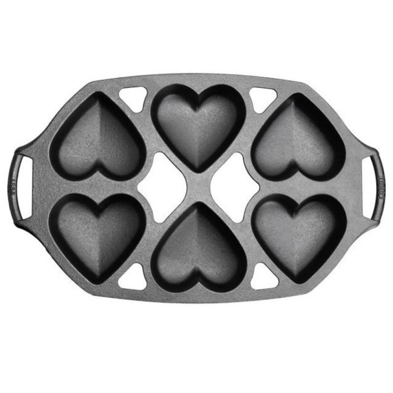 Masivní litinová pečící forma na výrobu sladkých i slaných dortíků ve tvaru srdcíVe formě Lodge SRDCE lze v jeden okamžik připravovat až 6 dortíkůZ obou stran formy jsou madla pro snadnější a bezpečnější manipulaci s těžkou litinou Formu můžete použít v horkovzdušné troubě, uvnitř grilu i přímo v ohništiVyrobeno z čisté litiny bez jakéhokoli chemického "nepřilnavého" povrchu a snese i extrémně vysoké teplotyJe určené k tepelné úpravě p