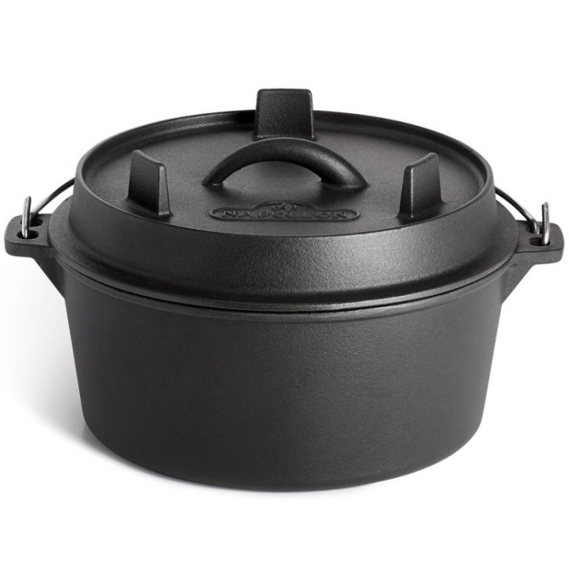 Velký litinový hrnec Napoleon o průměru 24 cm a objemu 4,5 litruNerezové madlo pro snadné zavěšení nad topeništěm a přenášeníTěžká poklice na dvojitém hrnci výborně sedí a perfektně drží teplo a lze ji použít i samostatně jako grilovací pánevHrnec i poklici můžete použít buď dohromady nebo samostatně jak v grilu, domácí troubě, tak i v rozpáleném ohništiPerfektní pro využití při kempování či rybaření Litina výborně drží teplotu, což je