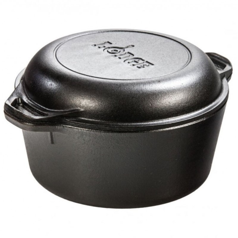 Velký, masivní litinový hrnec s poklicí černé barvy s hladkým nepřilnavým povrchemHrnec má průměr 26 cm, obsah 4,7 litruDvě uši pro snadnou manipulaci s těžkou litinouHlubokou poklici s ušima z boku můžete po otočení použít jako druhou pánevLitina výborně drží teplotu, což je perfektní na steaky a ostatní jídla, která ke své přípravě vyžadují vysokou teplu Použitelný na plynovém sporáku, indukční i sklokeramické desce, v horkovzdušné