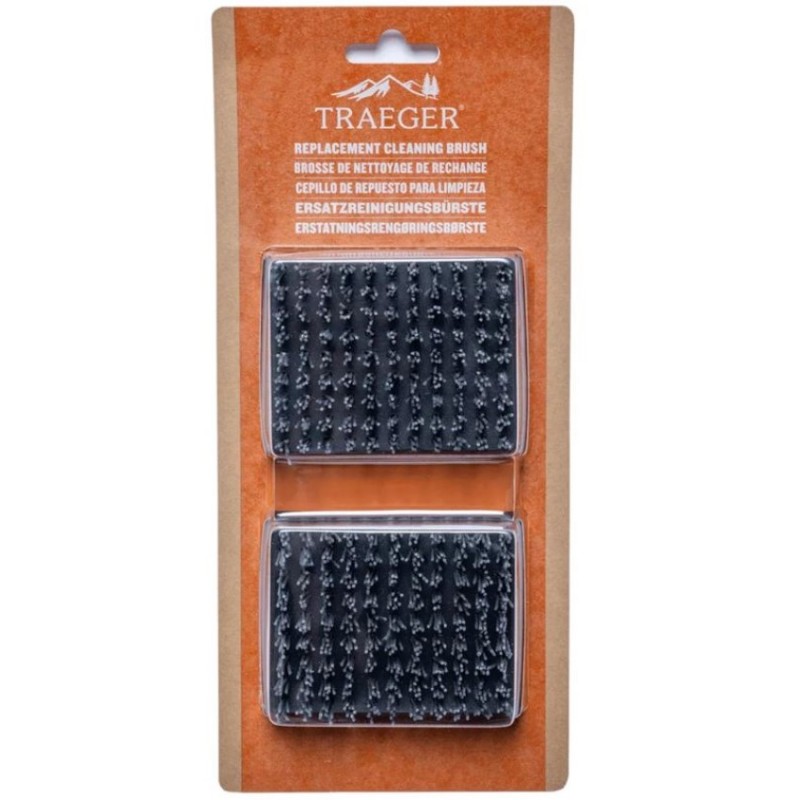 Náhradní hlavice pro kartáč Traeger s nylonovými štětinami pro snadné odstranění připečeného jídla z grilovacích roštůNylonové štětiny zajistí bezpečné odstranění zbytků jídla i mastnoty z vychladlých roštů, aniž by došlo k narušení povrchu roštůRozměr čistící plochy je 7 x 8 cm