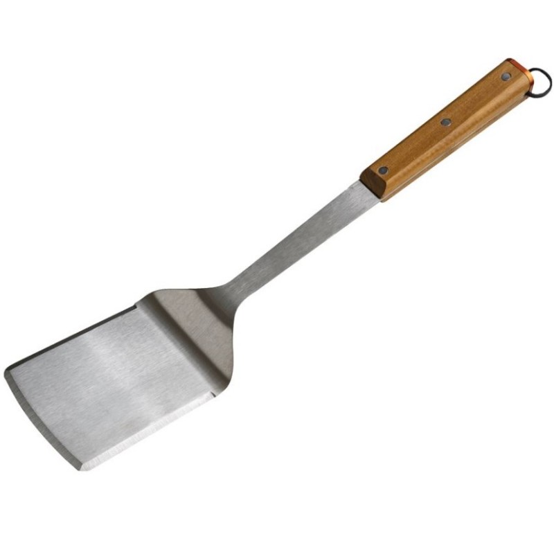Extra dlouhá obracečka Traeger s ostrými hranami pro snadnou manipulaci s grilovaným masem i zeleninouObracečka pro peletové grily Traeger skvěle padne do ruky a snadno se s ní obrací jak malé, tak větší kusy masaNa konci rukojeti je praktické očko na zavěšeníObracecí plocha je vyrobena z nerezové oceliRobustní dřevěná rukojeťPo použití doporučujeme omýt v saponátu a otřít dosuchaVelikost obracecí pl