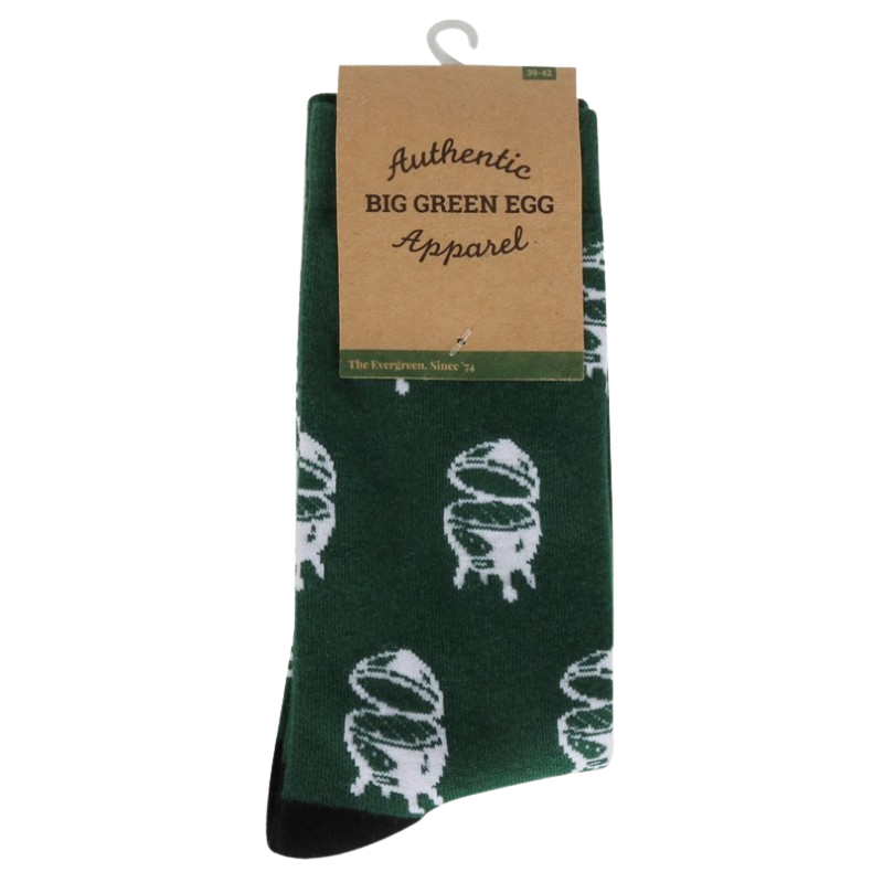 Stylové zelené ponožky s obrázkem grilů Big Green Egg a logem na spodní straněMateriál: 80% bavlna, 17% nylon, 3% spandexVelikost: 43-46