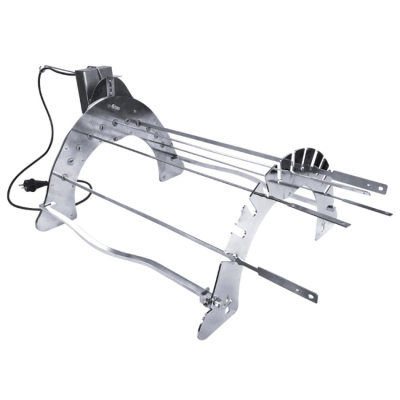 Grilovací špíz poslouží jako dokonalý pomocník při grilování na  grilovacích ohništích RemundiRotisserie je vyrobena z vysoce kvalitní chromované oceliPerfektní pro grilování masa i zeleniny napíchnuté na jehláchGrilovací špízy obíhají kolem své vlastní osy, čímž dosáhnete rovnoměrné tepelné úpravy masaOtočný špíz je ovládaný motorem na 220V Grilovací set je k dispozici se třemi špízy Split a špízem Trident