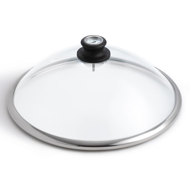Skleněná poklice LotusGrill určená pro grily na dřevěné uhlí Lotus s průměrem grilovacího roštu 35 cmSoučástí poklice je teploměr zabudovaný v rukojetiPoklice zaručí dokonalou regulaci a udržování teploty v grilPraktický kopulovitý tvar zajistí rovnoměrné grilování Díky poklici můžeme využít techniku i pomalého grilování při nízkých teplotáchPoklice je vyrobena z nerezové oceli, tvrzeného skla a nárazuvzdorného plastu (r