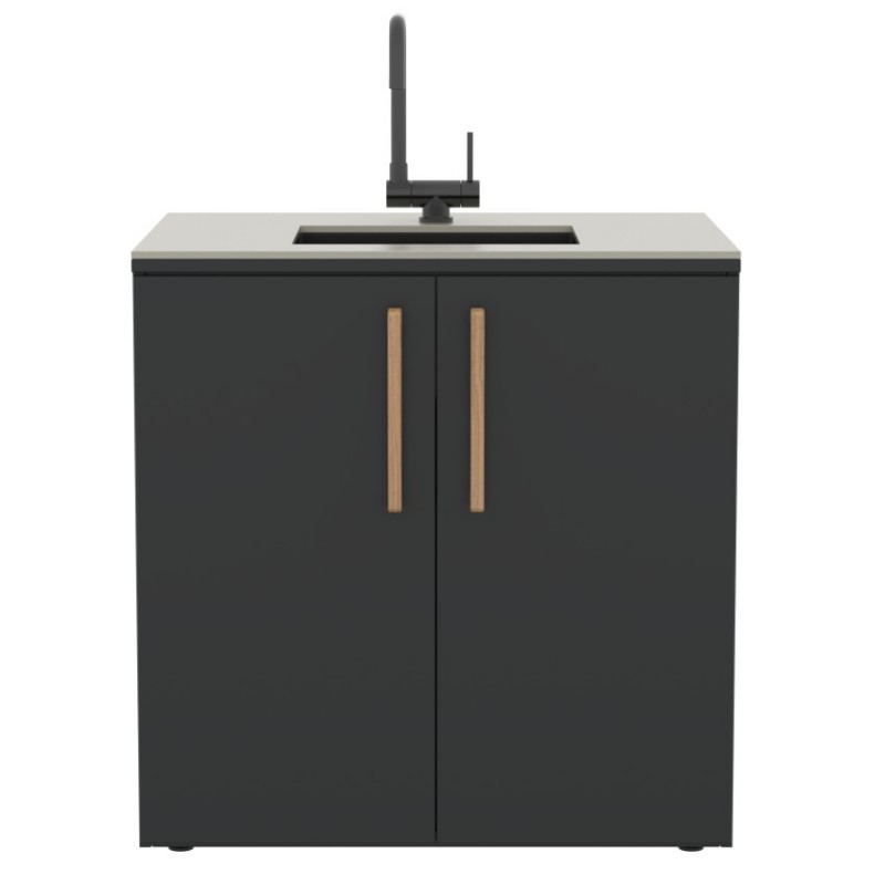 Brabura CT 90 Sink přináší do venkovní kuchyně plnohodnotnou mycí zónu pro přípravu i následný úklid. Integrovaný dřez umožňuje pohodlné oplachování surovin, mytí nádobí i rychlou údržbu pracovního prostoru přímo u grilu.Konstrukce z nerezové oceli s práškovým lakováním Qualicoat je navržena pro dlouhodobé venkovní použití a vysokou odolnost proti korozi. Pracovní deska z keramického materiálu Neolith dodává modulu luxusní vzhled a zároveň výjimečnou odolnost p