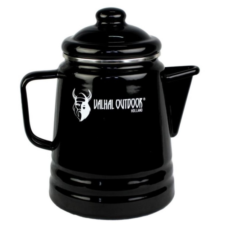 Připravuje tu nejchutnější a nejvoňavější kávu s konvicí s perkolátorem Valhal OutdoorKonvici můžete použít doma na sporáku, venku na táboráku nebo uvnitř griluObjem konvice je 1,7 l, snadno tedy připravíte až 6 šálků kávy na jeden zátahVelká hubice pro snadné naléváníKe konvici výrobce nabízí i smaltovaný hrnek Valhal Outdoor 400 mlPerkolátor má velkou rukojeť pro snadné uchopení gril