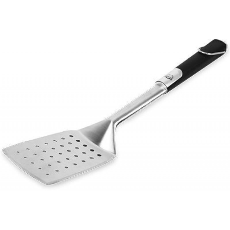 Špachtle Pit Boss z nerezové oceli je výborným pomocníkem při práci s grilovaným masem na rozpáleném griluDěrovaná plocha špachtle pro snadnou manipulaci i krájení grilovaného masaLze použít na plynových grilech, elektrických, na dřevěné uhlí i na grilech peletovýchDíky protiskluzové rukojeti se špachtle dobře drží a výborně se s ní manipulujePraktické očko na zavěšeníSnadné čištěníVh