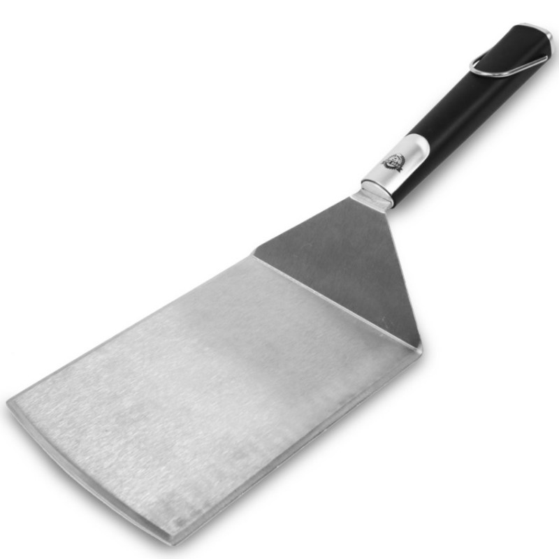 Špachtle Pit Boss z nerezové oceli je výborným pomocníkem při práci s grilovaným masem na rozpáleném griluVelká plocha špachtle pro snadnou manipulaci i krájení grilovaného masaLze použít na plynových grilech, elektrických, na dřevěné uhlí i na grilech peletovýchDíky protiskluzové rukojeti se špachtle dobře drží a výborně se s ní manipulujePraktické očko na zavěšeníDélka špachtle 40 cm