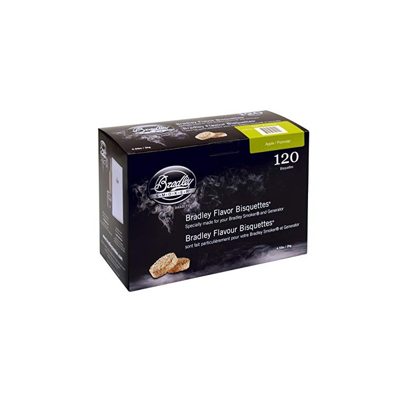 Velké balení briket Bradley Smoker Jabloň pro elektrické udírny BradleyJeden balíček obsahuje celkem 120 ks udících briketHodí se k uzení kuřecího masa, ryb, zeleniny a sýrů