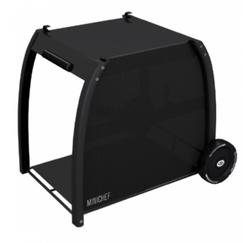 Praktický vozík k elektrickému grilu Outdoorchef Minichef a plynovému grilu Outdoorchef Minichef během okamžiku zvýší grilovací plochuSystém pro bezpečné a velmi snadné usazení grilu do vozíkuDvě pevné nohy a dvě kolečka pro snadnou manipulaci s grilemTextilní zástěna pro uschování plynové láhveHáčky na zavěšení grilovacího nářadí a ut